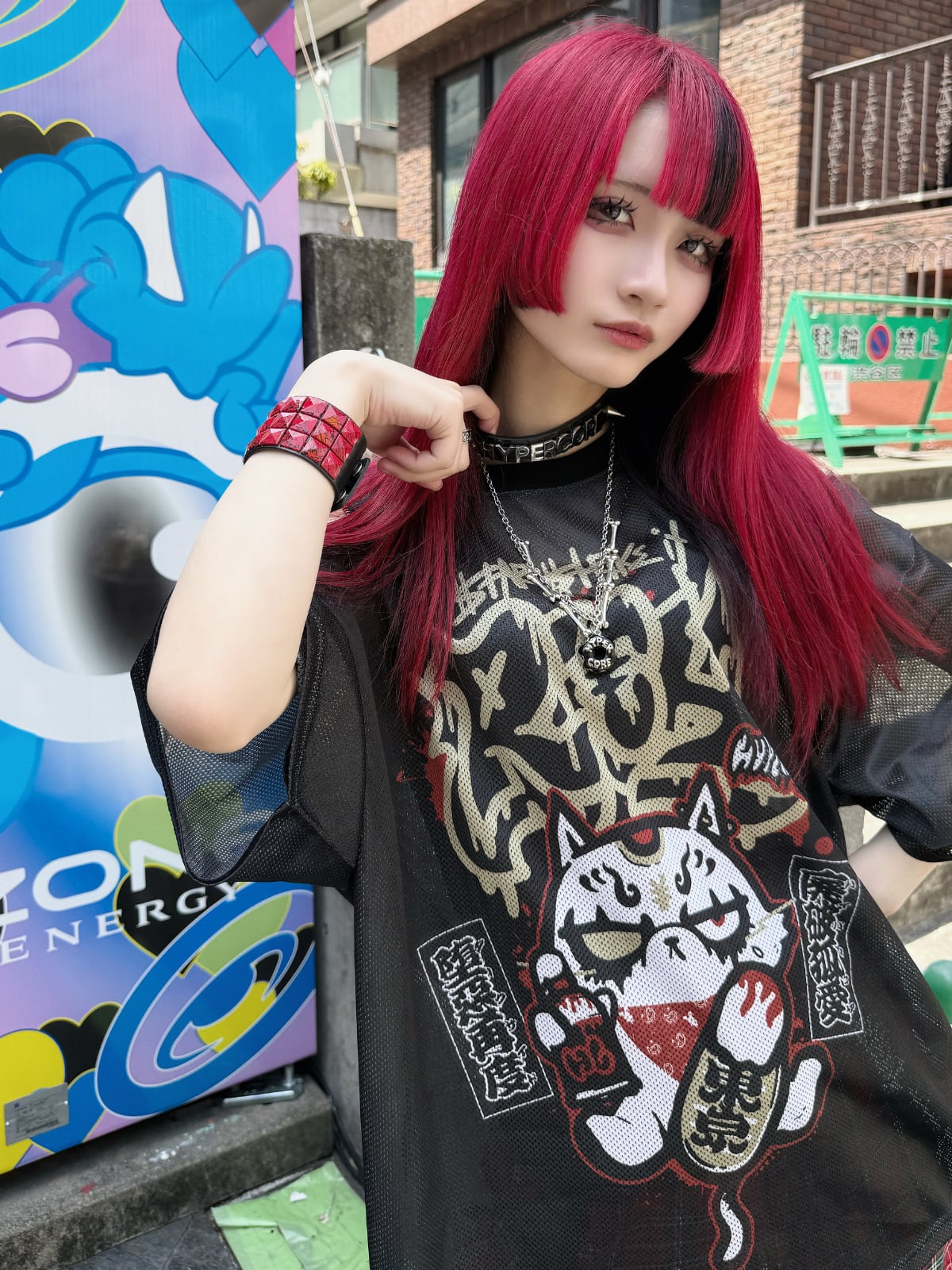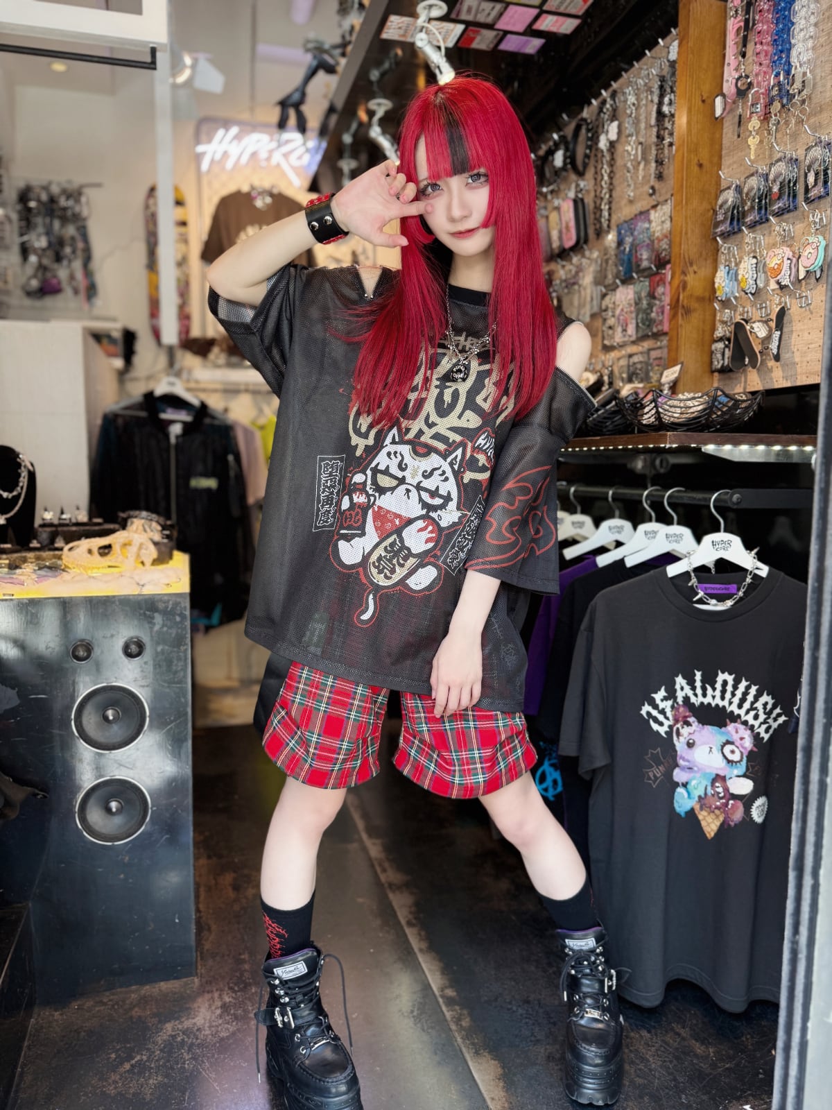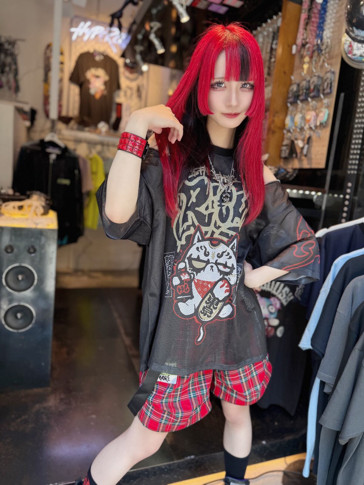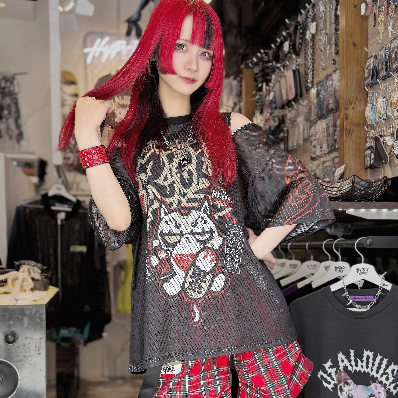 HCT-435A $TAR $TRIKE IT RI€HショルダージップメッシュTシャツ