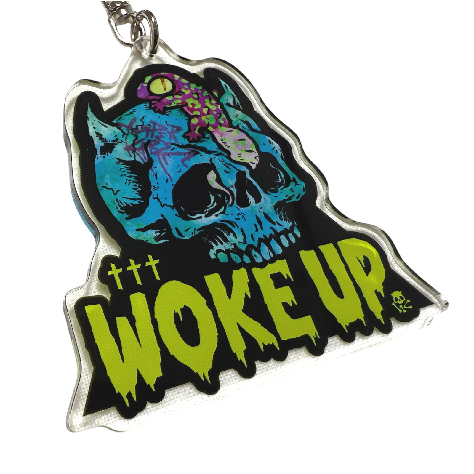 WOKE UPデザインのアクリルチャームキーホルダーです。