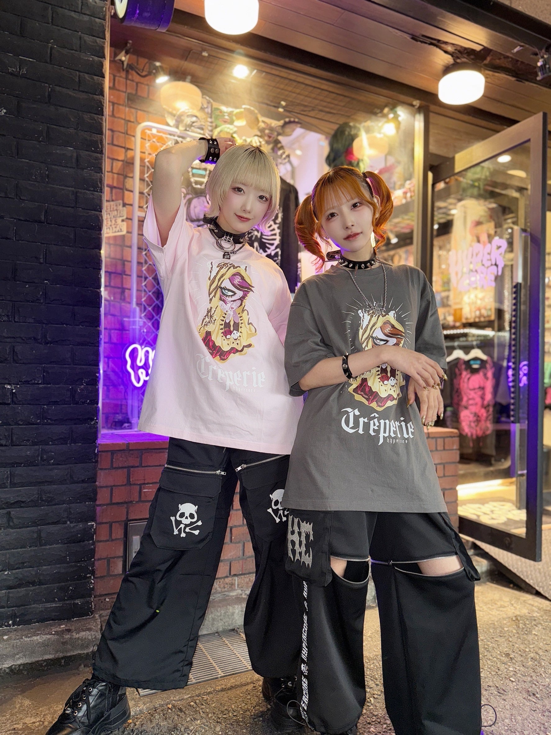 両サイドのHCスカルロゴ刺繍が目を惹くジップ多用のPUNKカーゴパンツです。