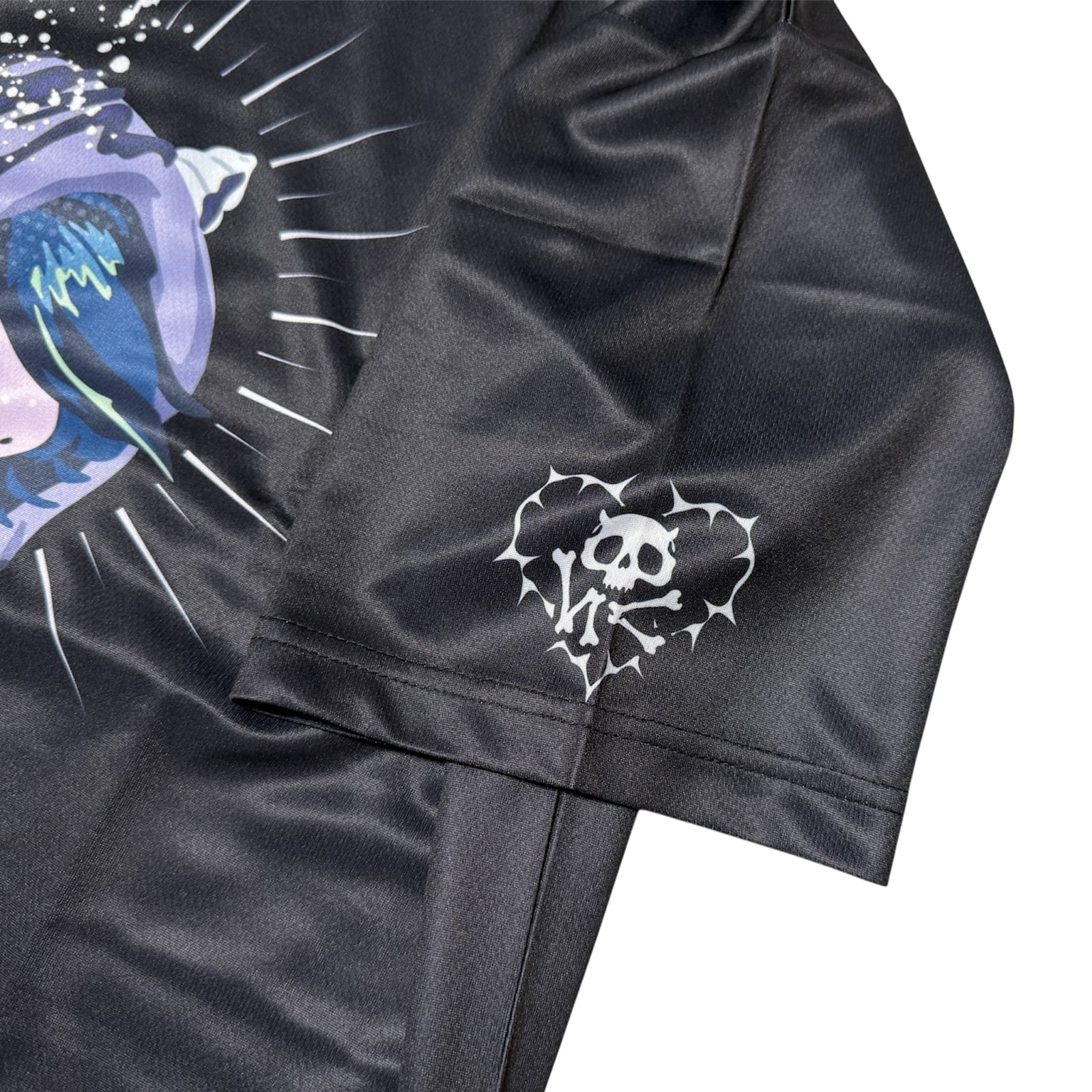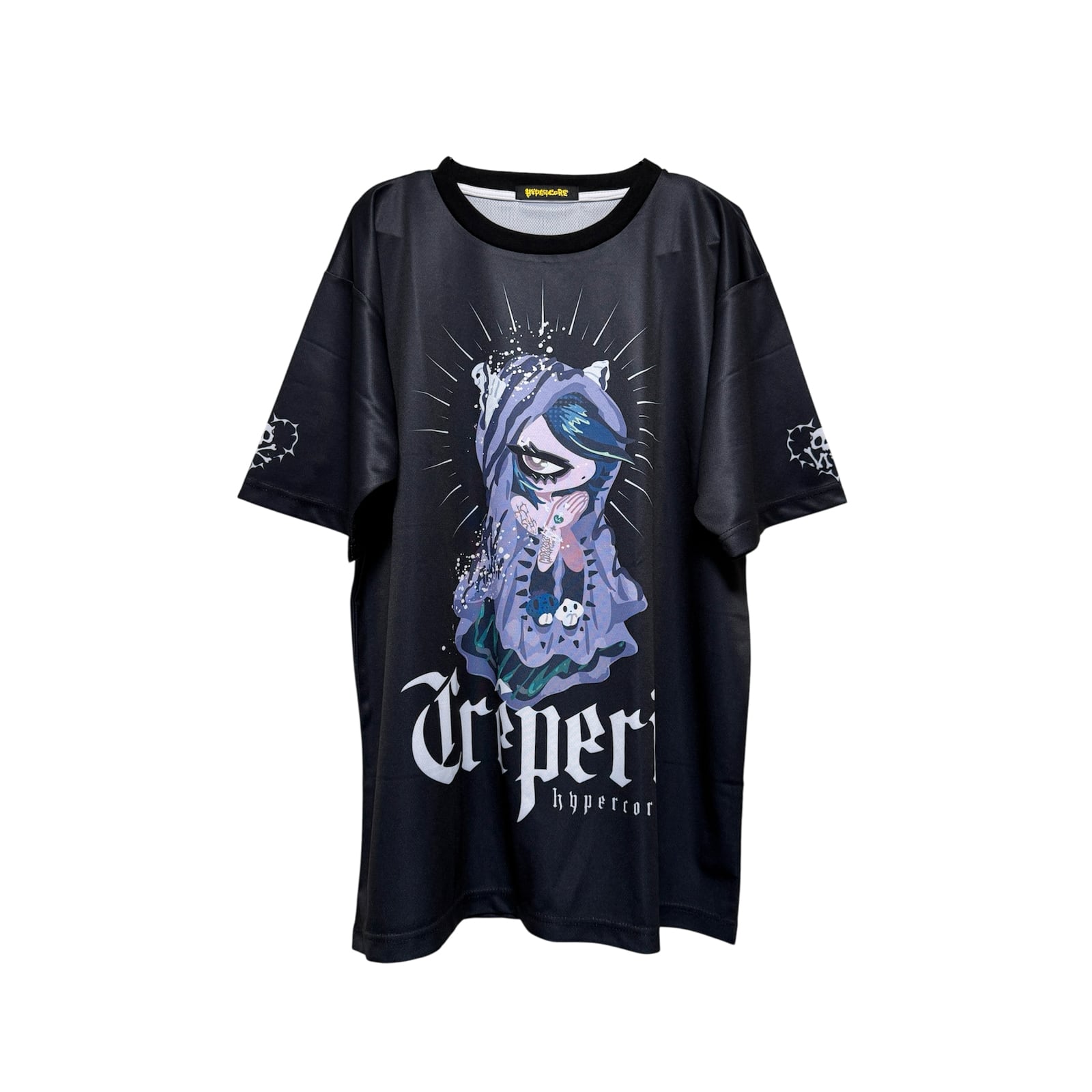 袖にはNEVER SLEEPS SKULLロゴ、バックにはクレープのレシピが入っています。