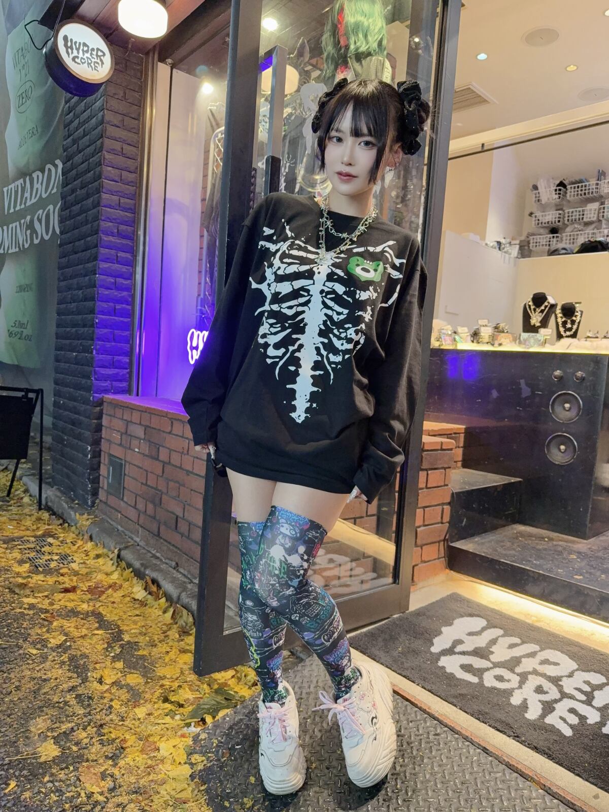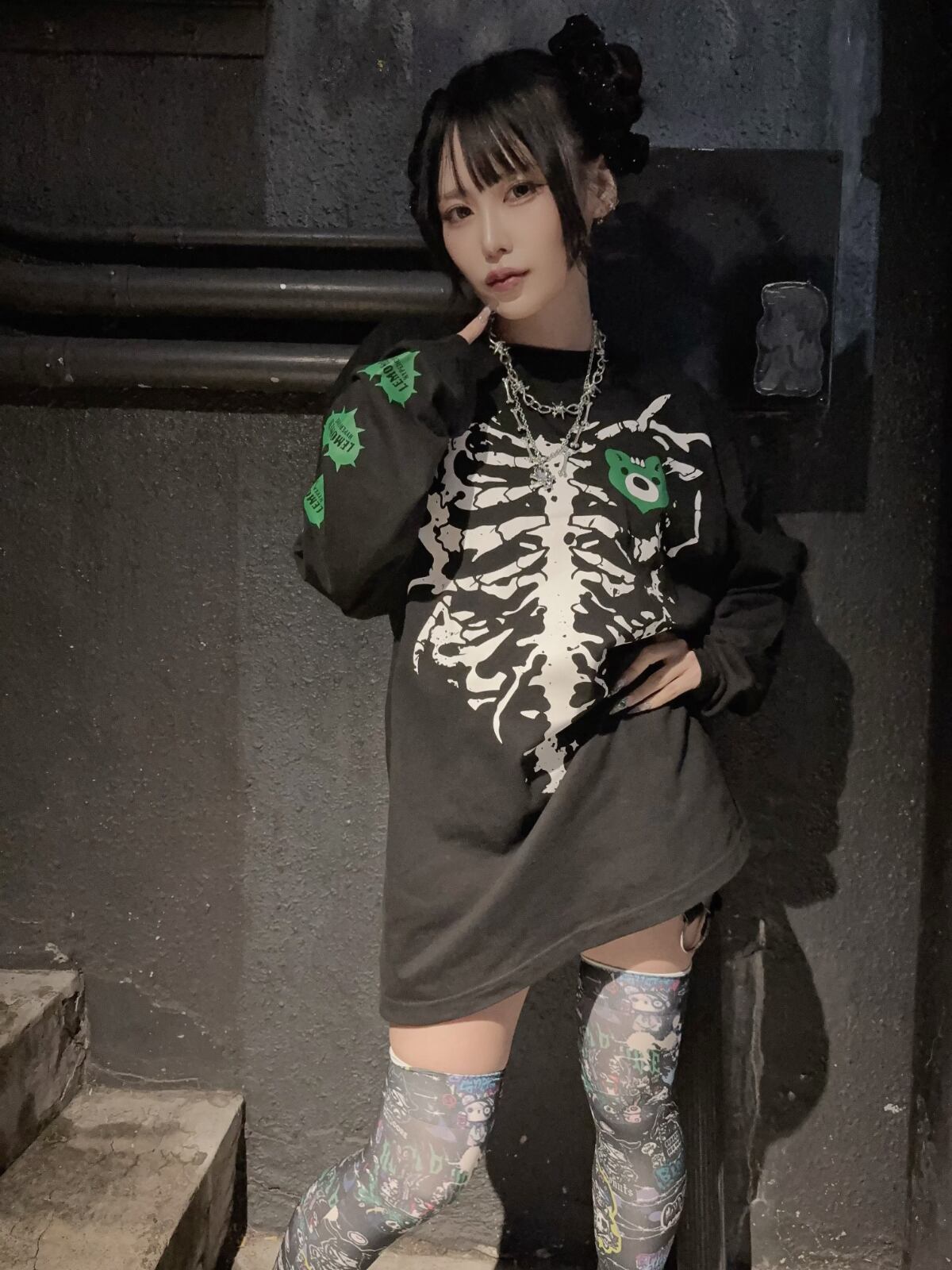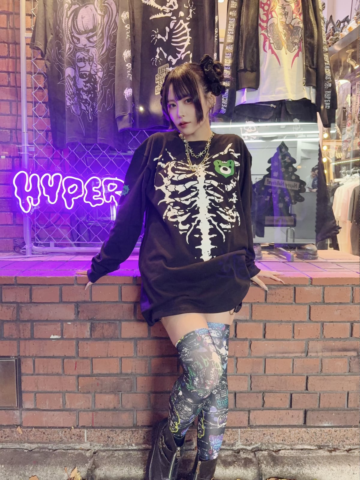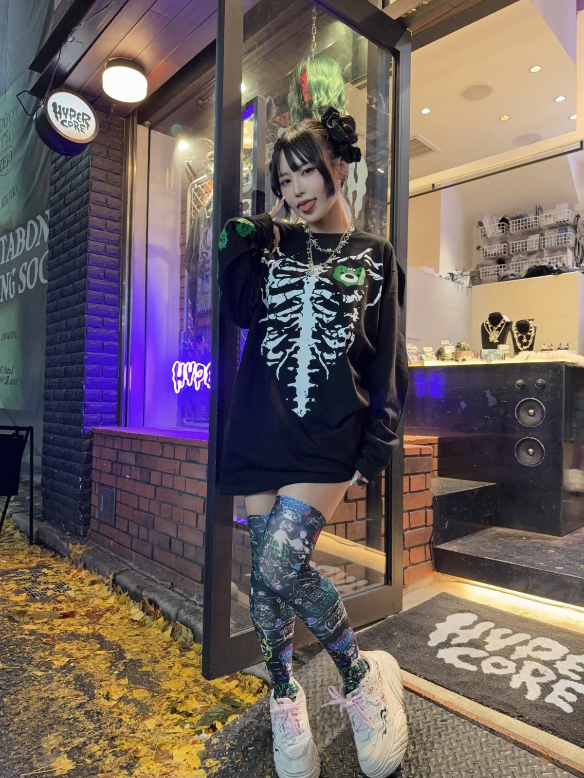 HC STREET BACK ALLEYデザインのグラフィックニーハイです。