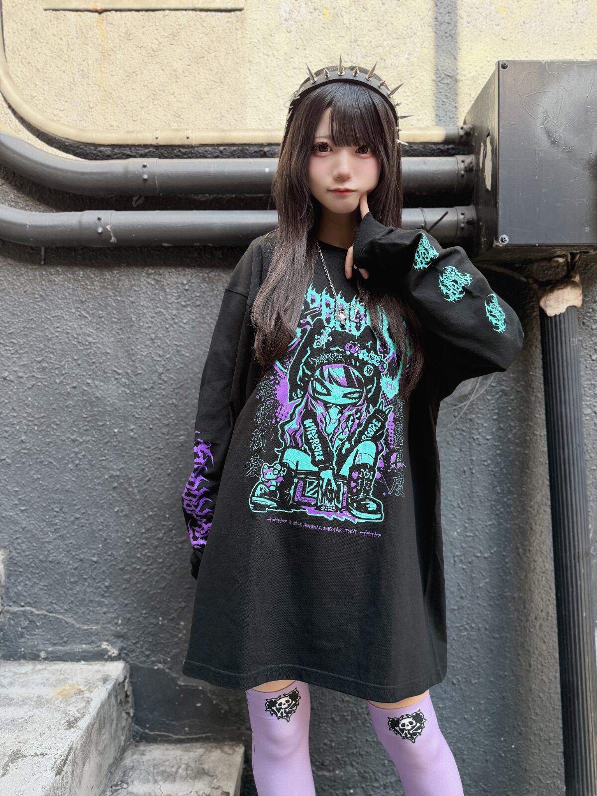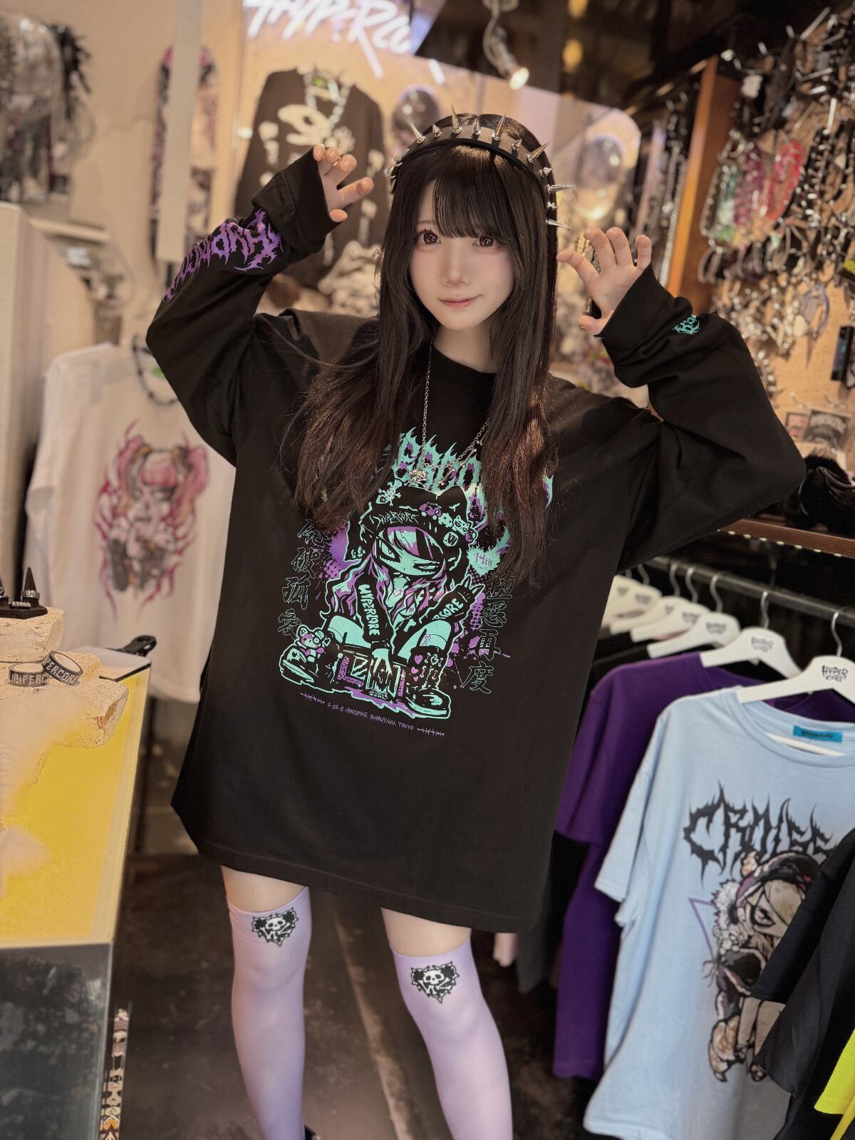 左右異なるハイパコニーハイでアシンメトリースタイルにするのもあり!