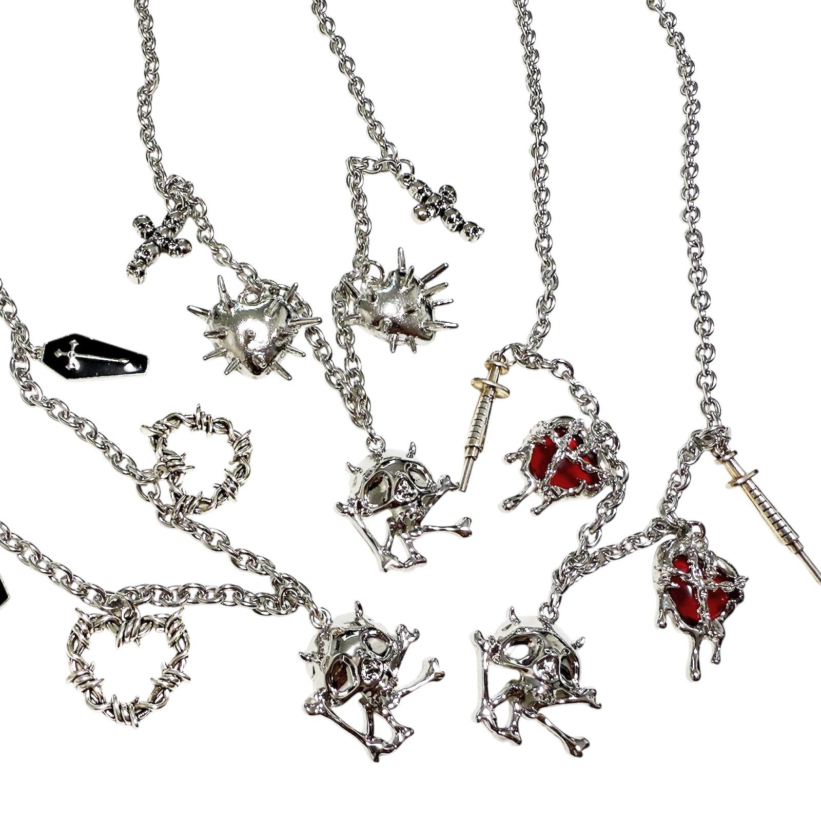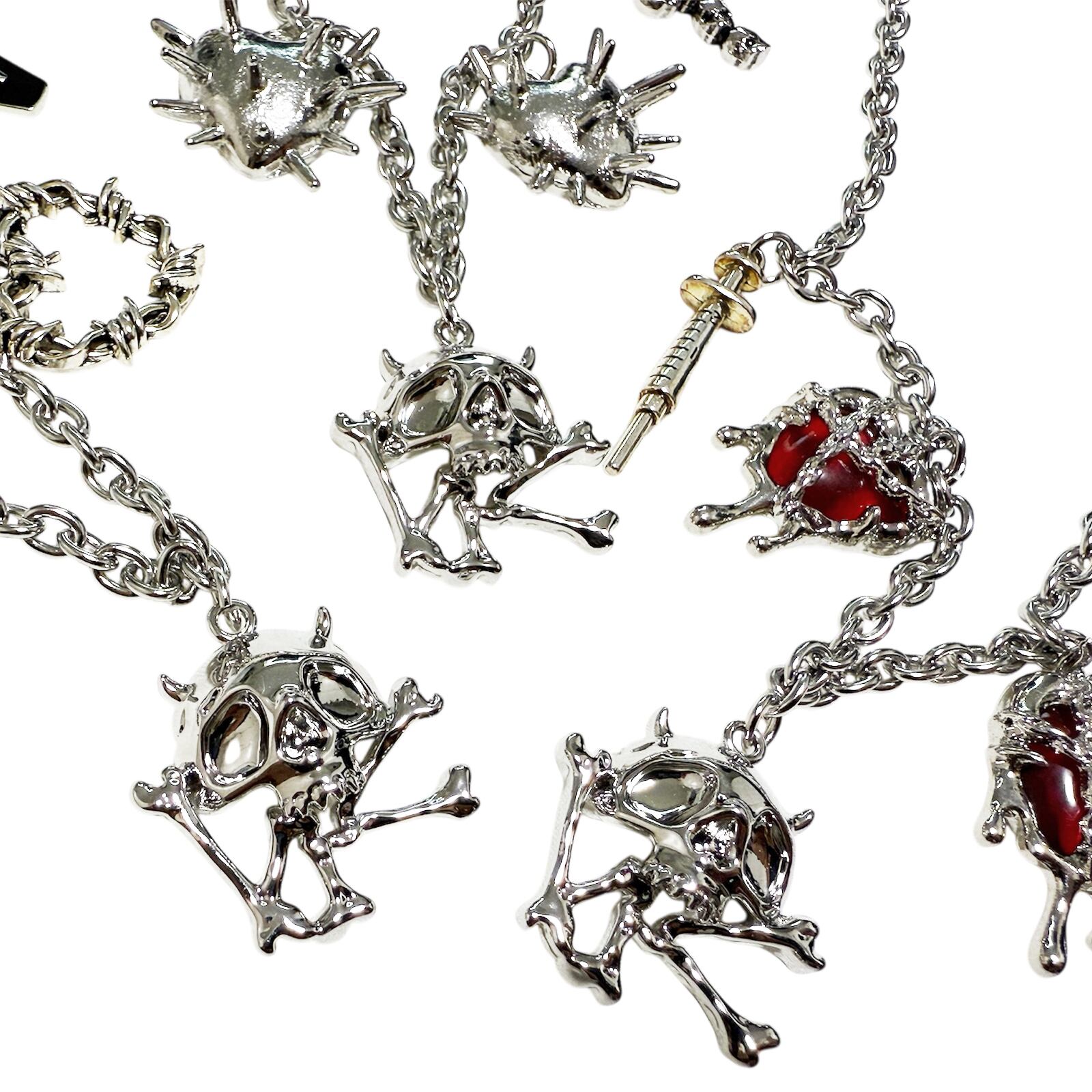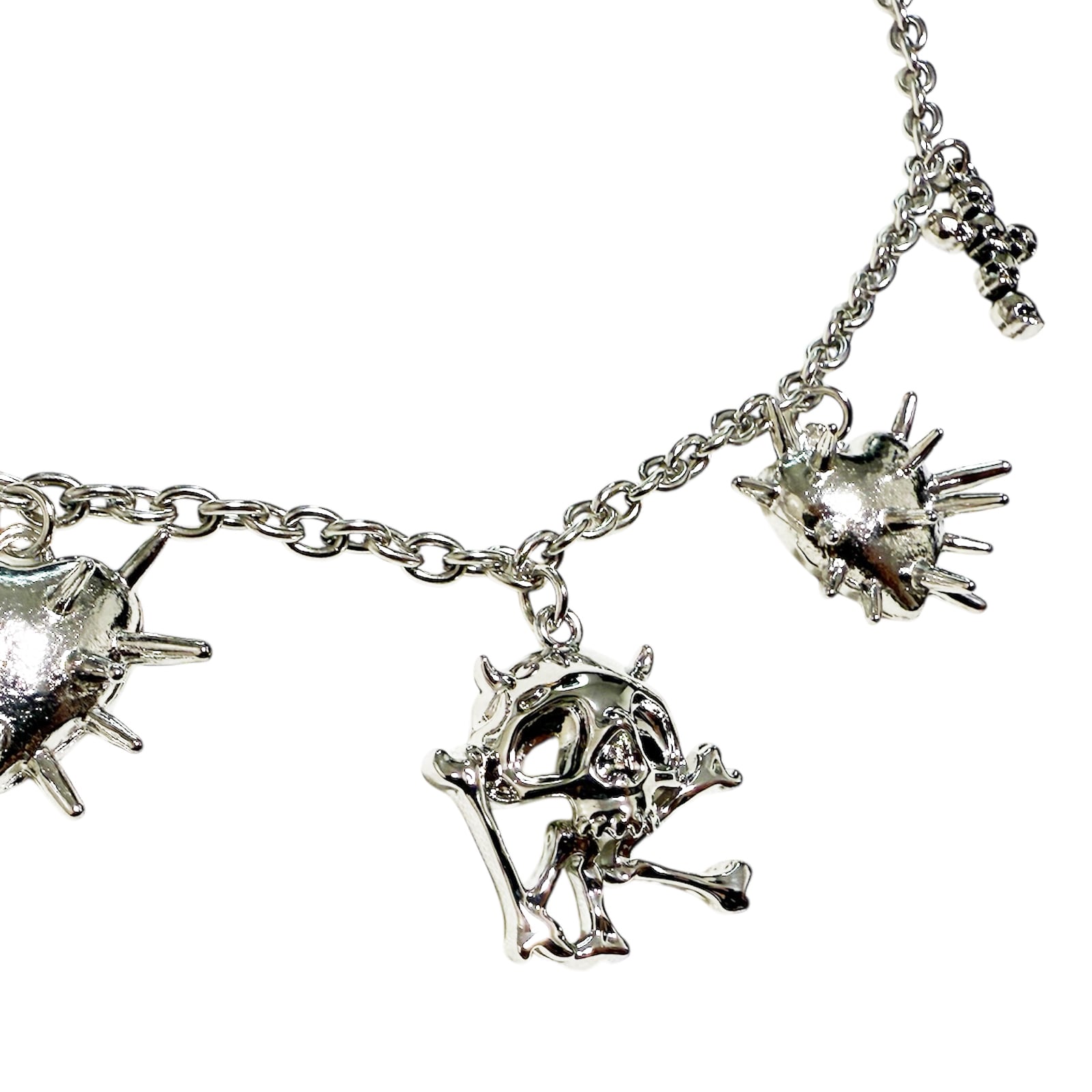 HCスカルxランダムにぶら下がったチャームの組合せがPUNKなネックレスです。