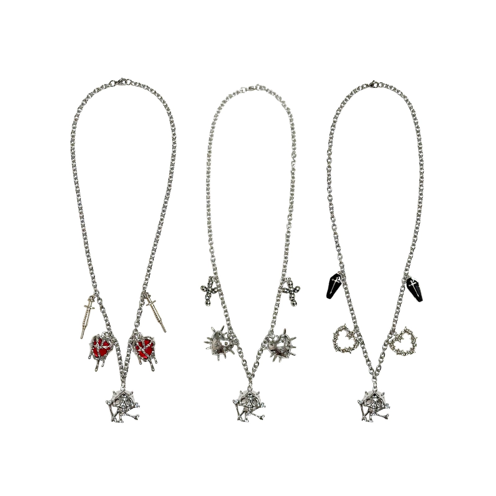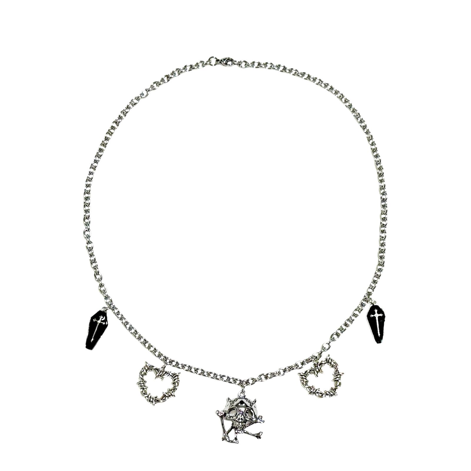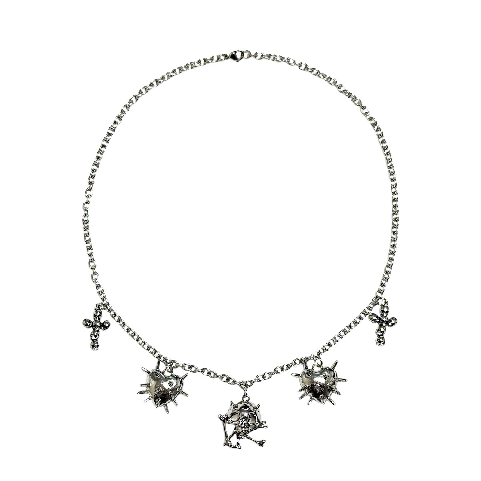 HCスカルxランダムにぶら下がったチャームの組合せがPUNKなネックレスです。