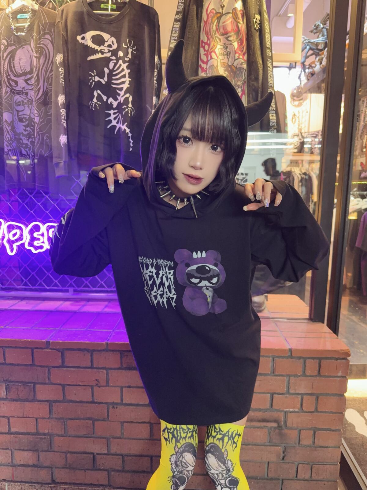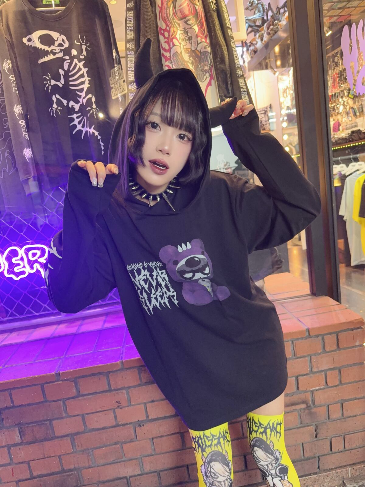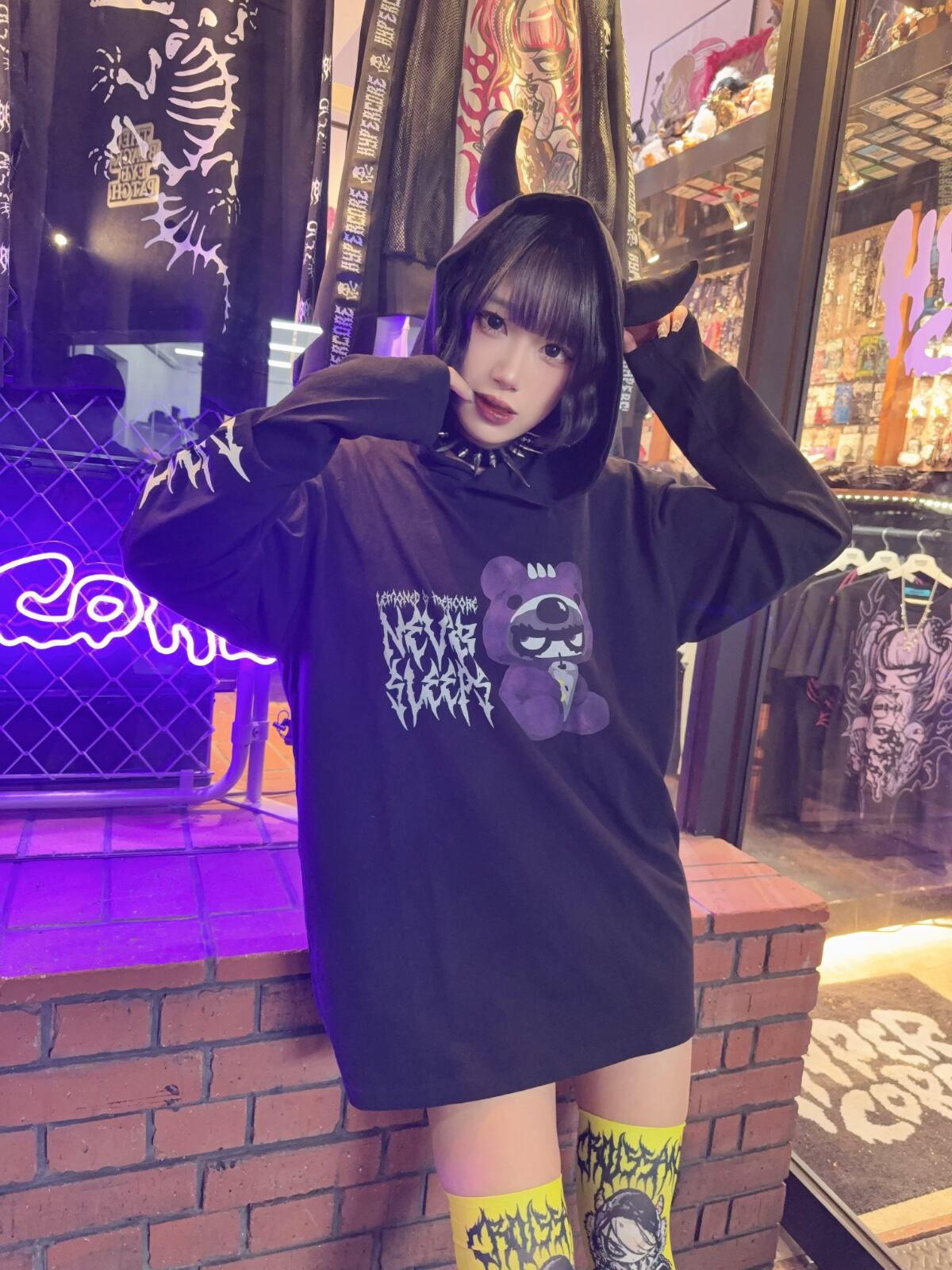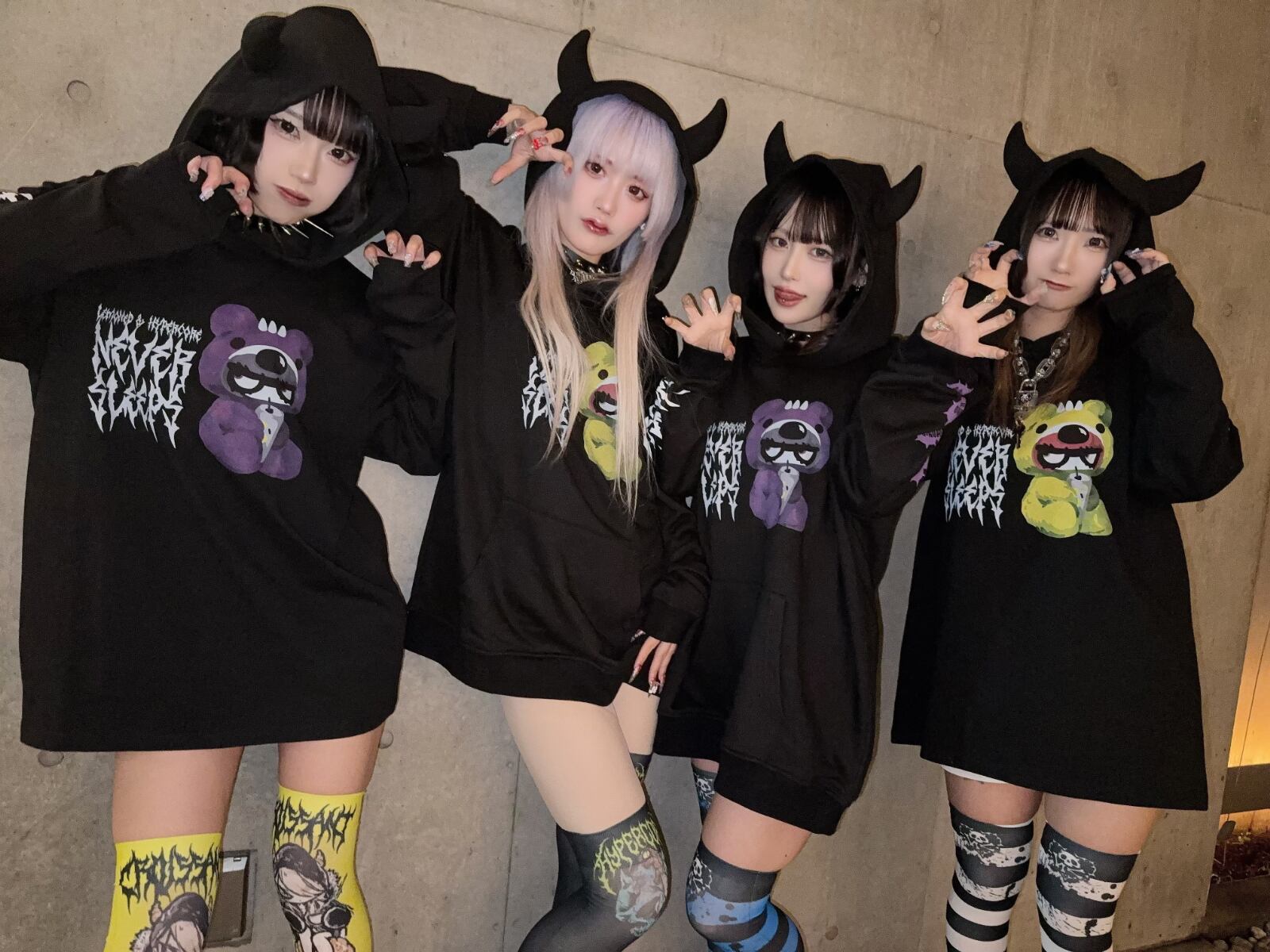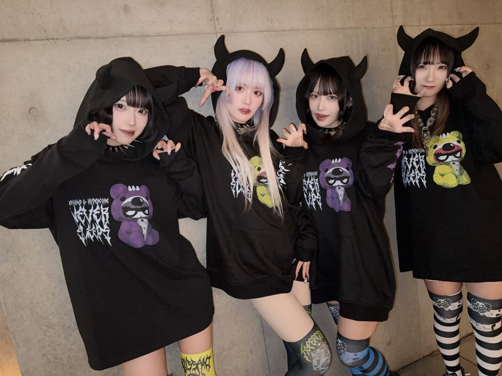 左右異なるハイパコニーハイでアシンメトリースタイルにするのもあり!