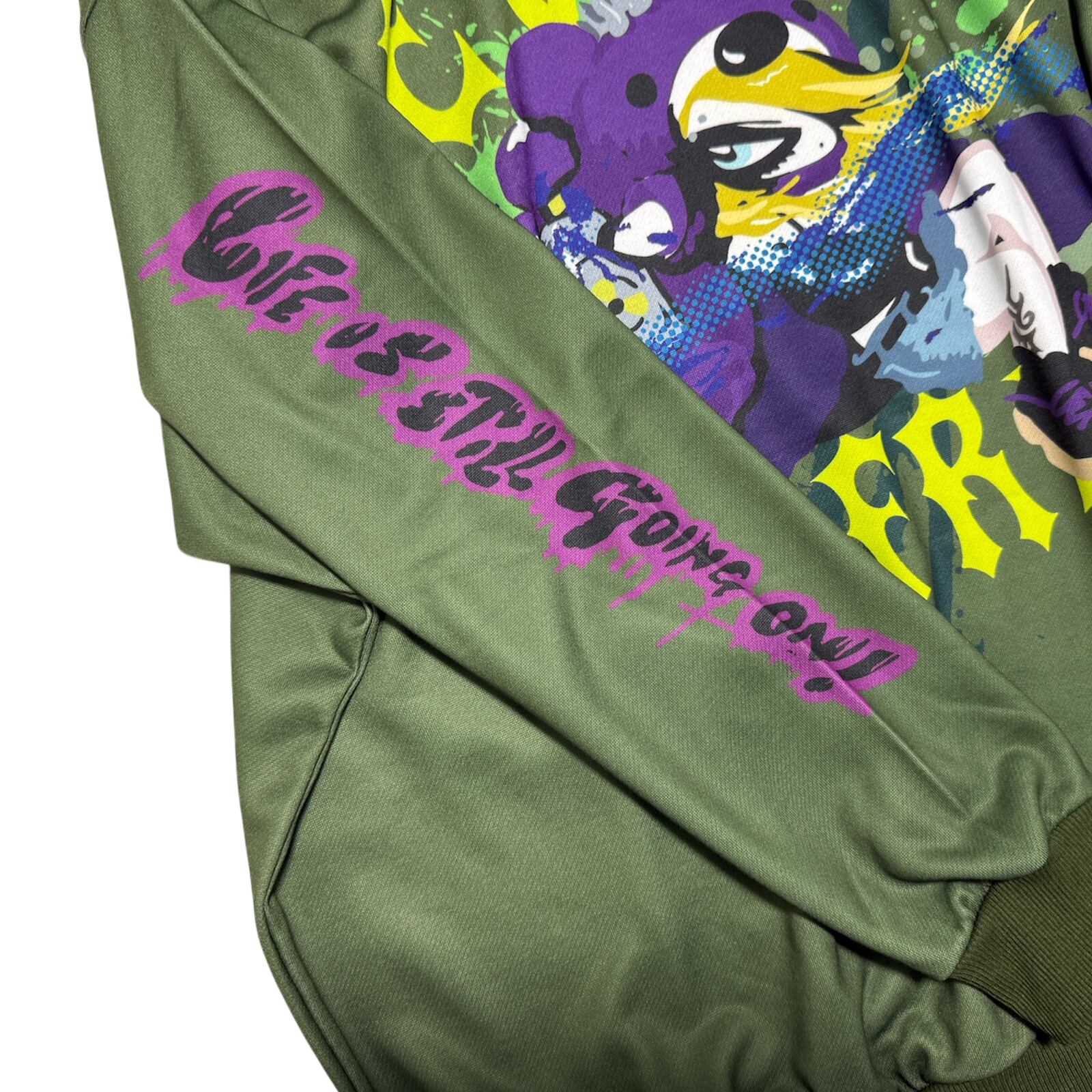 サイコベアを身に纏った子ギャルが過去の自分をスプレーで塗りつぶすPOSITIVE VIBESデザイン!