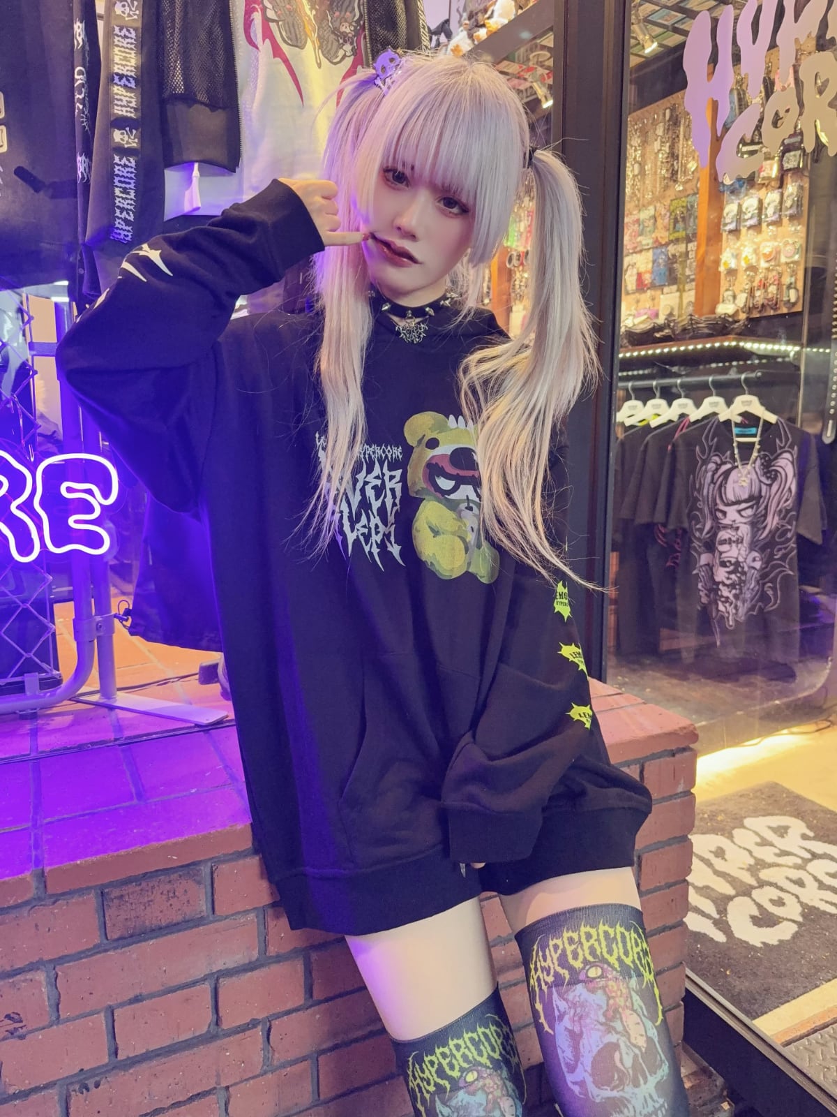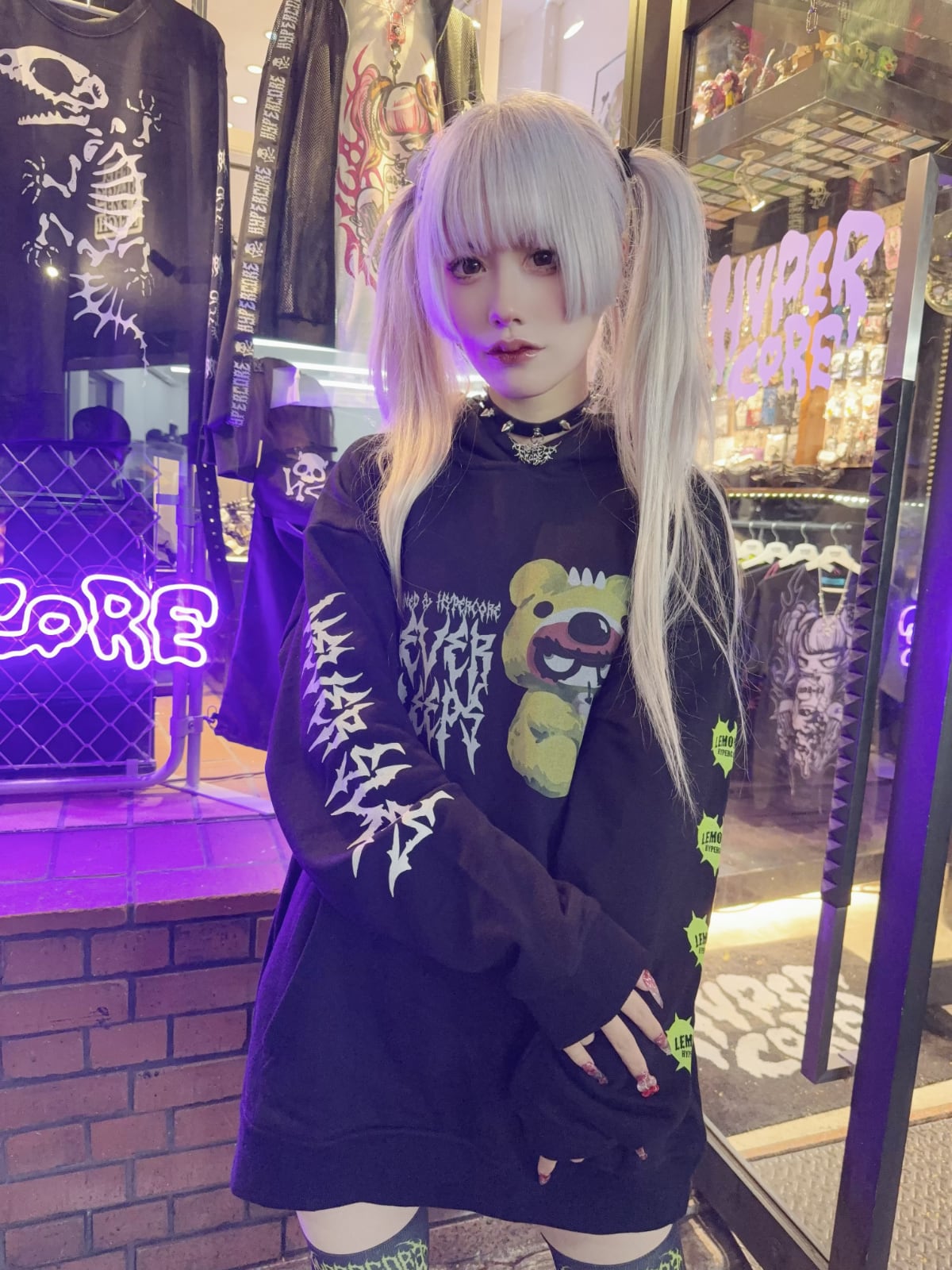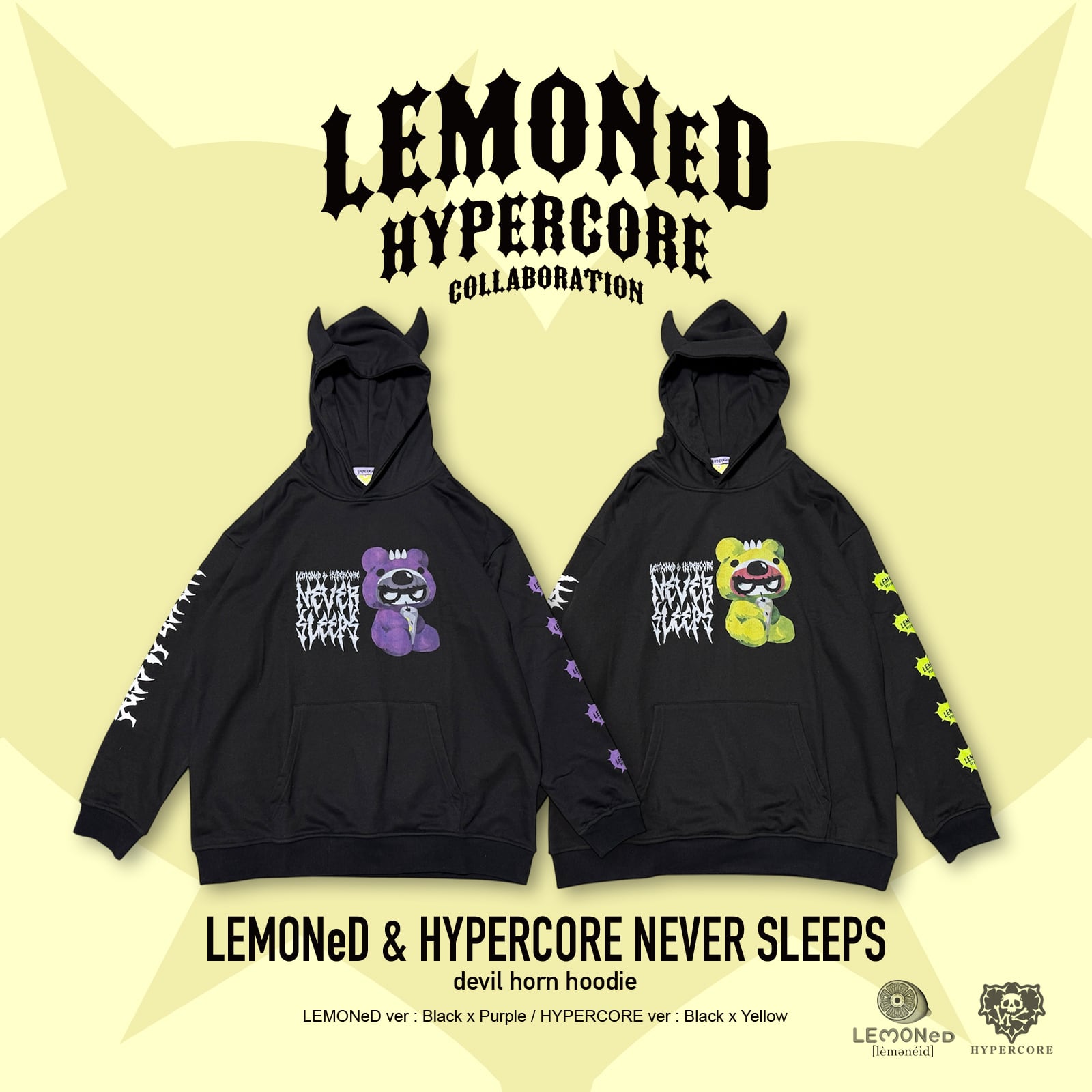 "LEMONeDとHYPERCOREは眠らない"がコンセプト、NEVER SLEEPSデザインのデビルホーンフーディーです。