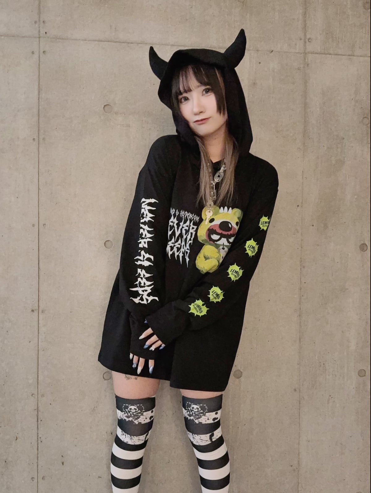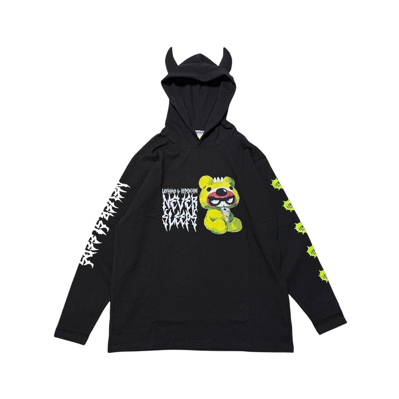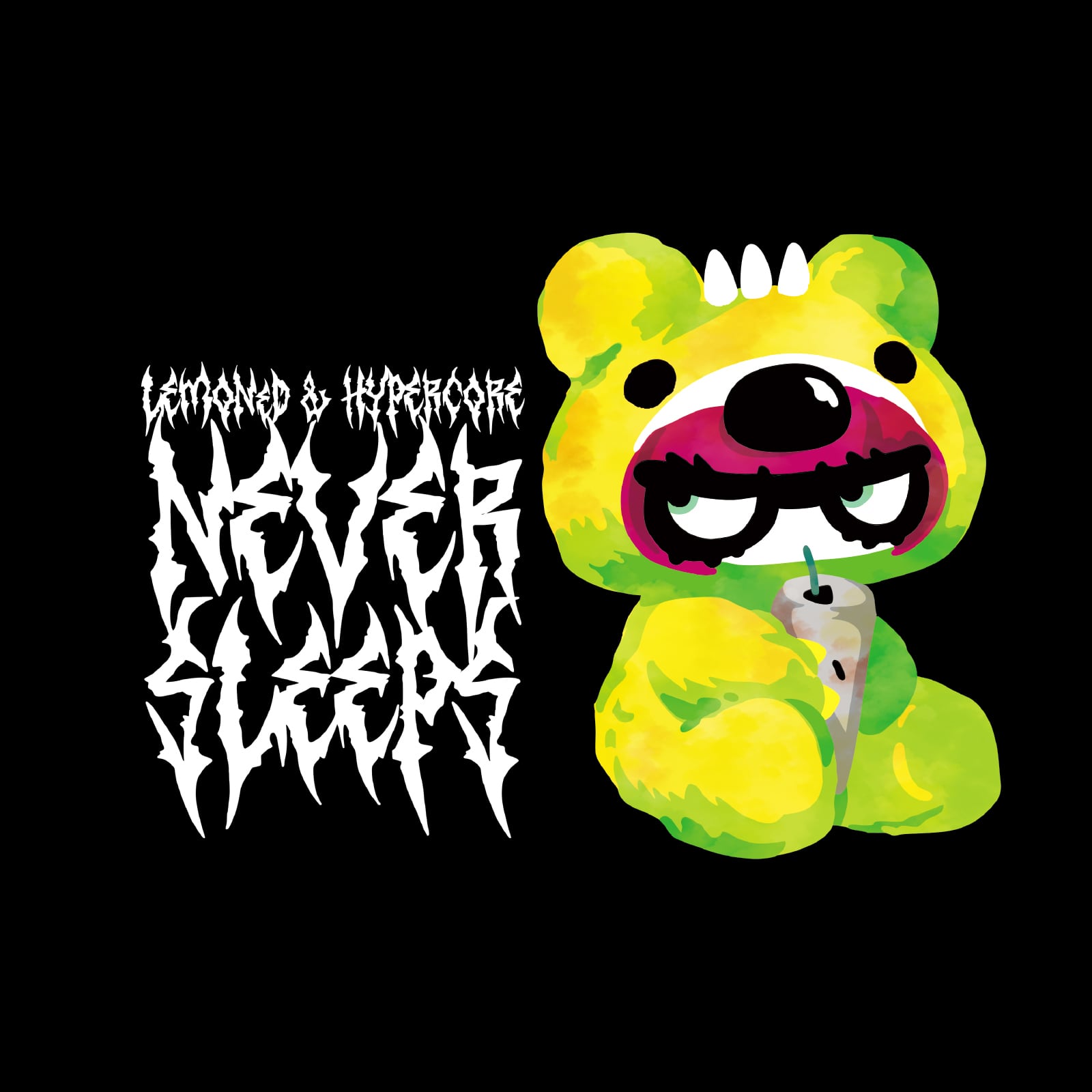 "LEMONeDとHYPERCOREは眠らない"がコンセプト、NEVER SLEEPSデザインのデビルホーンロンTです。
