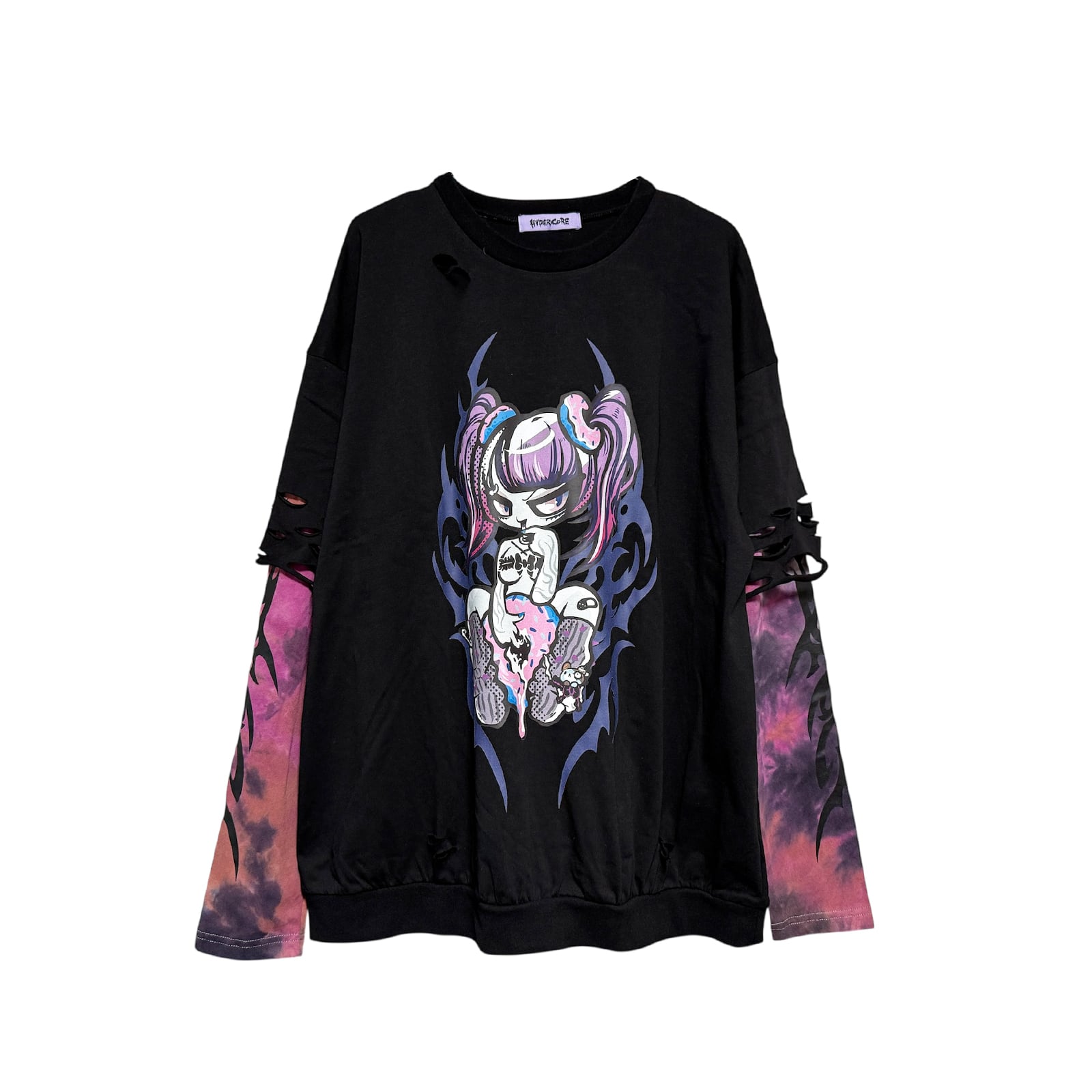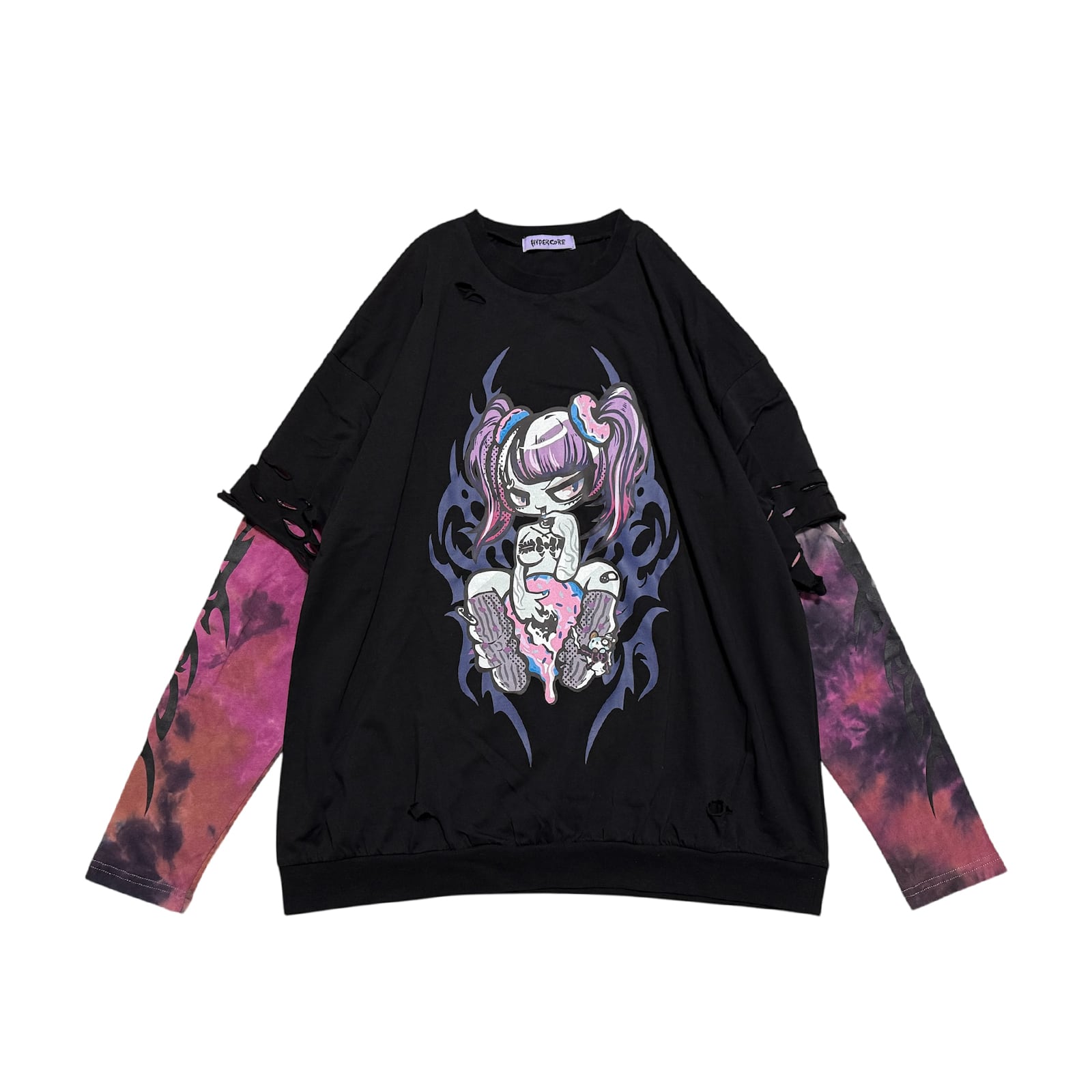 Temptation DonutタイダイレイヤードロングスリーブTシャツ(HCL-166B)