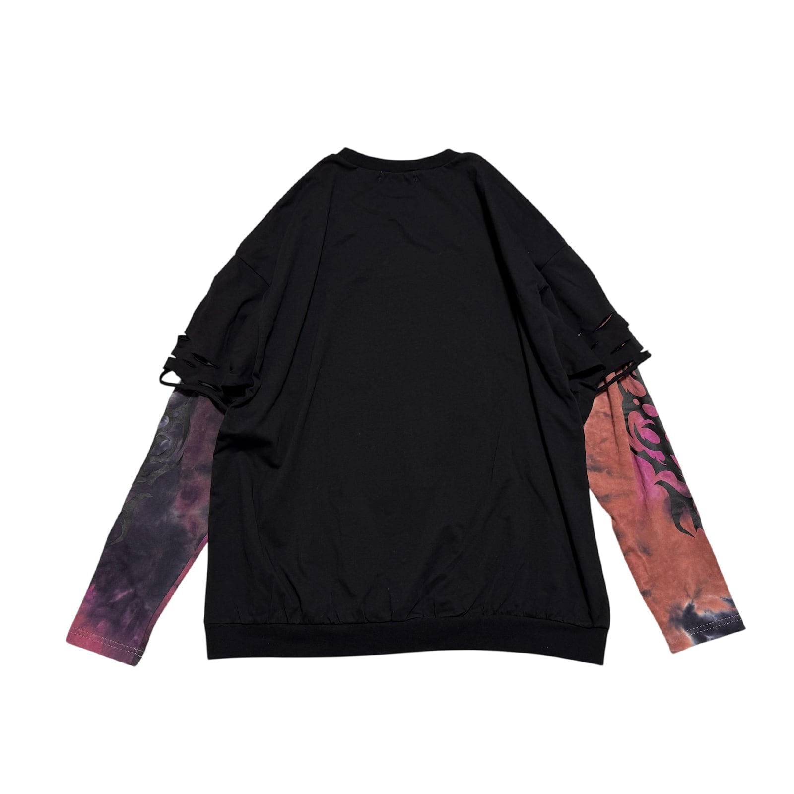 タイダイ染めスリーブで重ね着風に仕上げたロングスリーブTシャツです。