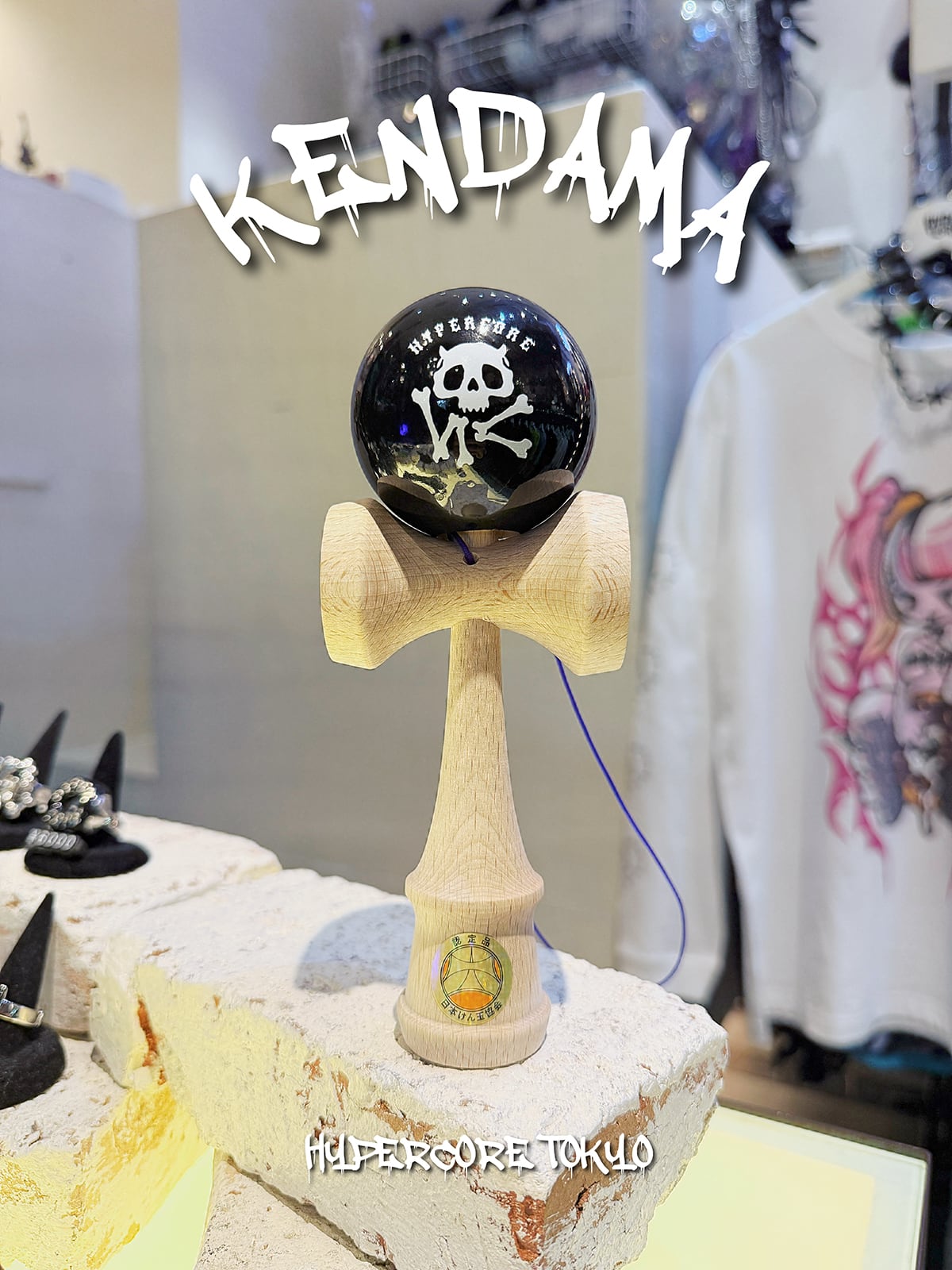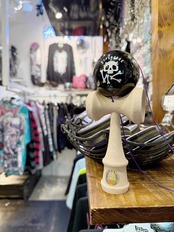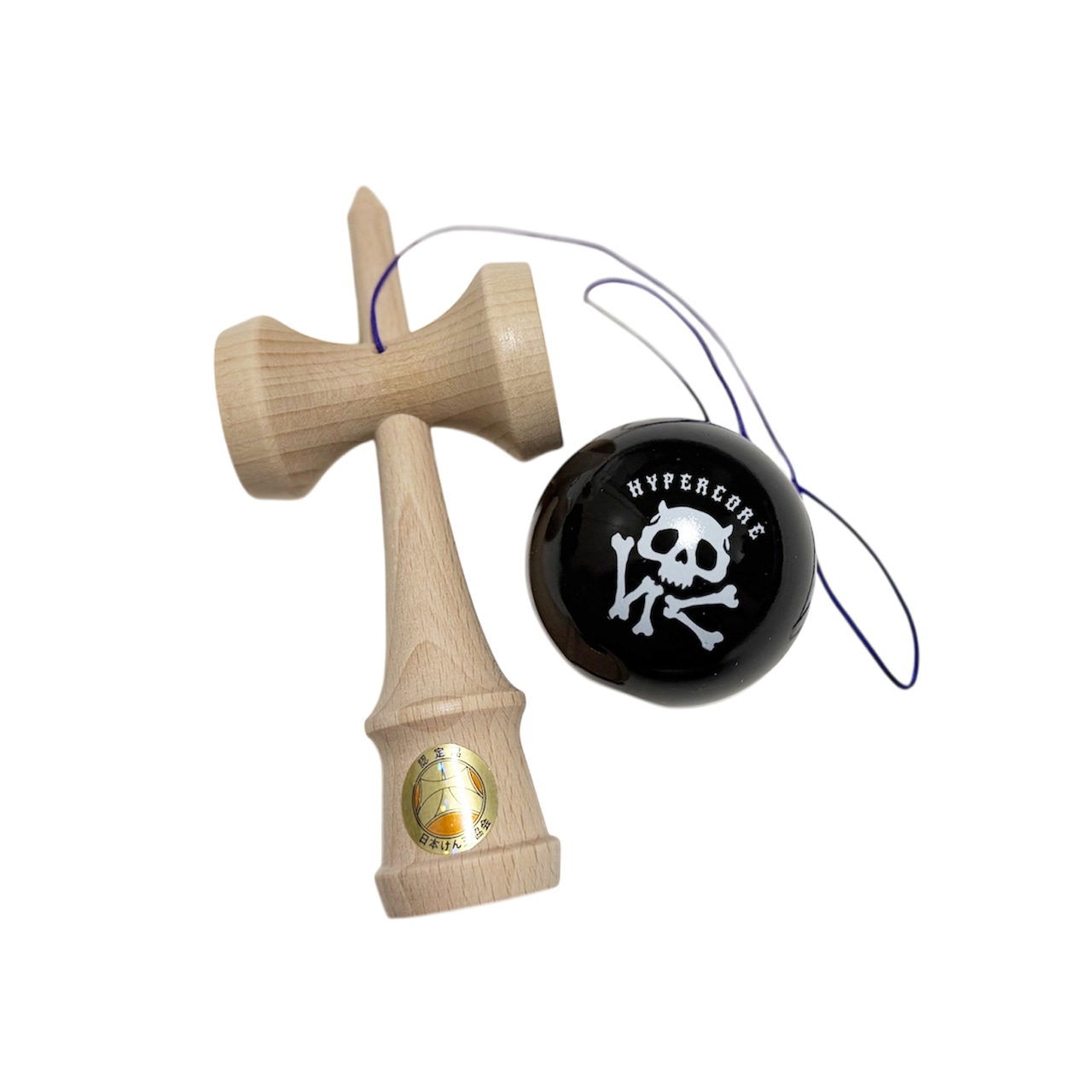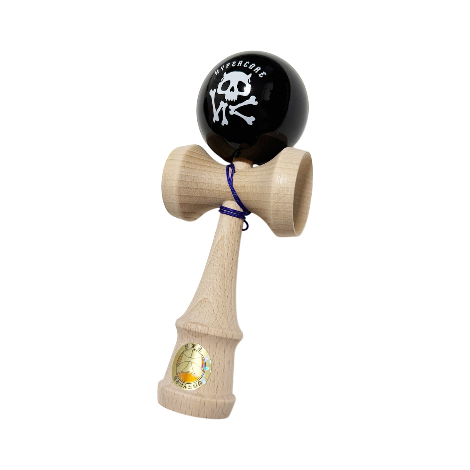黒の煌びやかな球にHC NEVER SLEEPSロゴが入った日本けん玉協会認定のけん玉です。