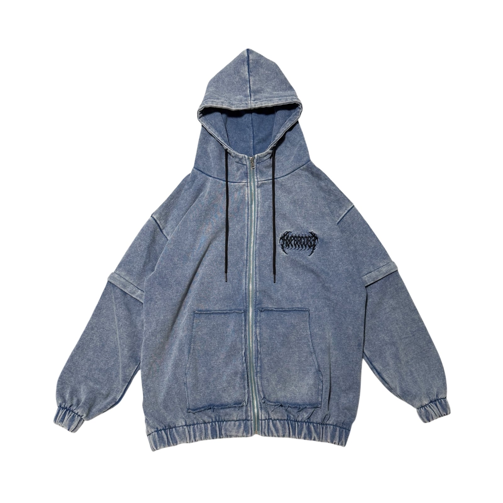 色褪せビンテージ感あるピグメント加工を施したジップフーディーです。